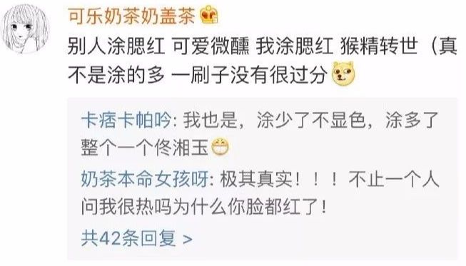 而我畫個腮紅媽媽都會問我是不是被人打耳光了