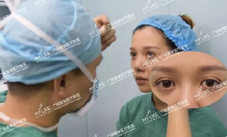 先是給她測量適合的雙眼皮寬度