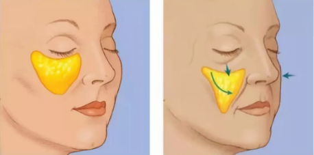 它主要是顴骨前的皮下組織和脂肪筋膜結(jié)構(gòu)