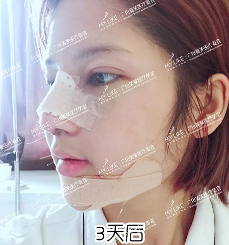墊了下巴,還帶著鼻夾,處于消腫期