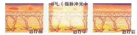 IPL是目前臨床上應用較為廣泛的光治療技術之一,在皮膚美容領域占有十分重要的地位,廣泛應用于各種損容性皮膚病的治療,尤其是光損傷和光老化相關的皮膚病。IPL發揮美容效果,是基于以下兩點工作原理。