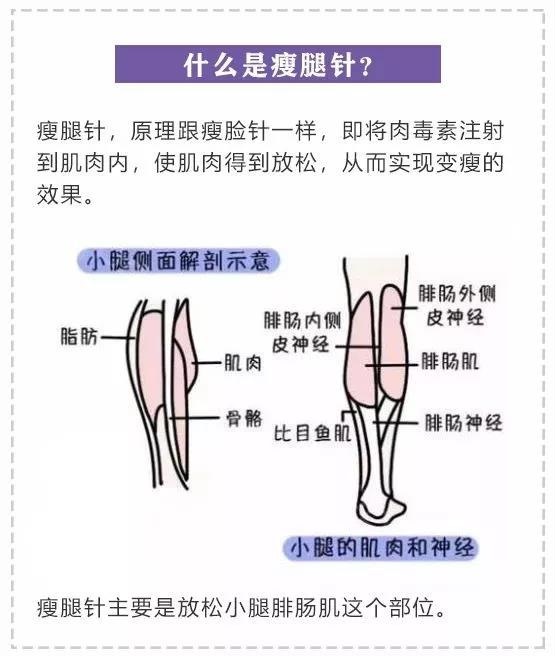 第二,瘦腿對醫(yī)師的要求更高,能瘦臉的醫(yī)師不一定會瘦腿,因為注射咬肌已經(jīng)有了比較完善的體系,而注射小腿并非一個公眾治療項目,很小眾,所以要求醫(yī)師有更多的經(jīng)驗,只有有技術(shù)經(jīng)驗的醫(yī)師才能讓求美者的小腿瘦得勻稱。像網(wǎng)上說的打了瘦腿兩只小腿不勻稱,這種往往就是醫(yī)師技術(shù)不到位。