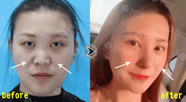 這種類型的鼻塌,就需要在隆鼻時候利用假體+自體軟骨填充鼻基底,把長在肉里的鼻子填起來,墊高鼻子的地基再配合鼻綜合手術,術后改善效果也是非常明顯。