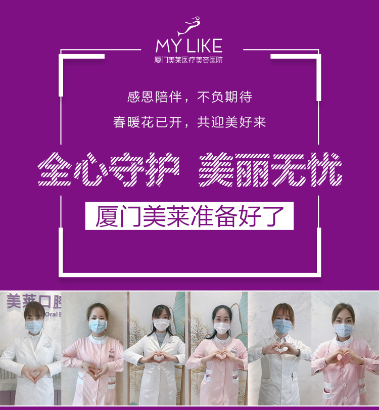 目前,廈門美萊已于2020年3月9日正式恢復營業,美萊院內每日將進行嚴密的疫情防控工作,嚴格按照國家衛生監督標準,為您的變美之旅做好安全保障,請您放心!