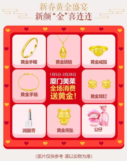 廈門美萊新春活動期間消費即送黃金啦~